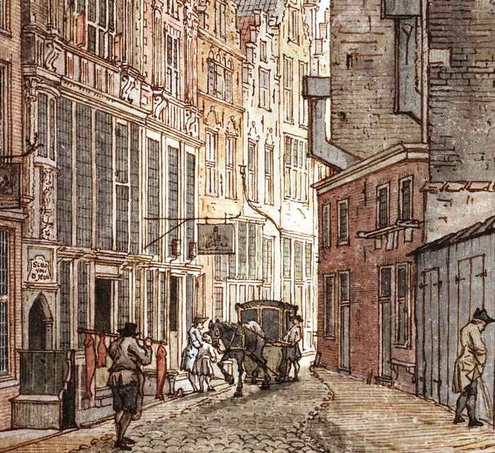Naarmate je in de buurt komt van de grachtenpanden, zie je dat mensen zich meer terugtrekken van de straat. Zij gaan letterlijk verheven in koetsen, hebben hoge stoepen en gaan zelfs verder achter in hun huis leven. ‘Ik heb een akte gevonden van een gesprek tussen een zaagmolenaar en een rechtsvertegenwoordiger. De rechtsvertegenwoordiger vraagt de zaagmolenaar dan om snel binnen te komen, want: “Ik spreek geen lieden op de straat of op de stoep”. Dat is een radicaal verschil met de rest van de stad, waar iedereen elkaar op straat spreekt.’
